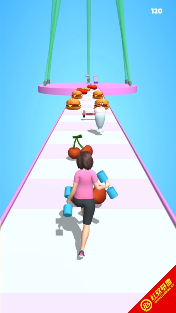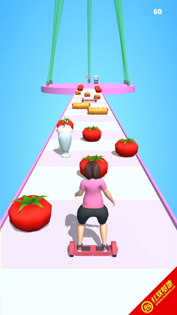 游戏中,玩家需要避开赛道上的各种食物障碍,以最完美的身体冲向终点。