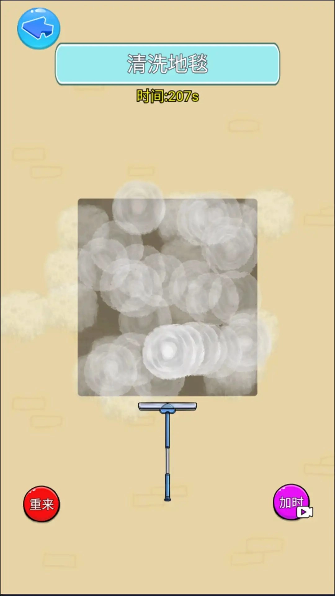 【仔细清洗地毯】把物品清洗到相应程度就能通过关卡,务必细致用心。