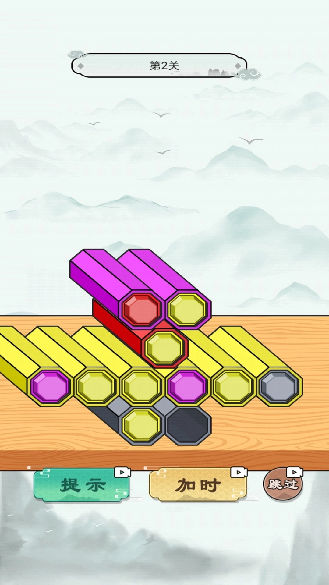 1、先观察关卡里彩笔的分布情况,制定出合理的分类方案,就能轻松完成挑战;