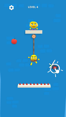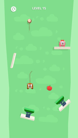 在部分关卡里,苹果处于半空中,此时你能够借助游戏中的弹簧,使掉落的动物被弹起。