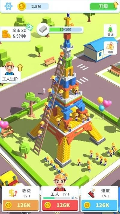4、真实还原建设场景,玩家可通过放置小人搬砖、建造房屋等操作来获取收益。