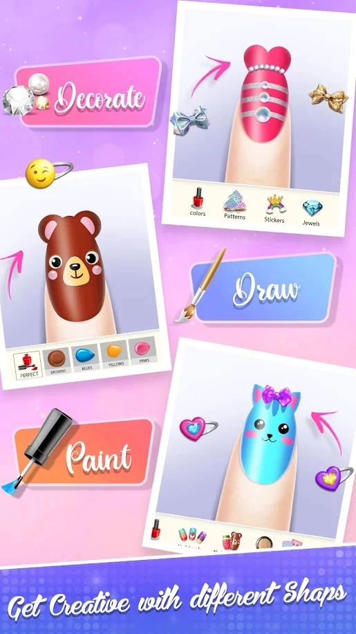 4.玩家能在这里尝试各式各样的美甲设计。进入美甲店后,只要是玩家心仪的款式,都能尽情展示多种风格。