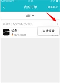 3、找到需要退款的订单,点击右上角的三点图标,就会弹出申请退款的提示。