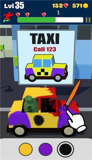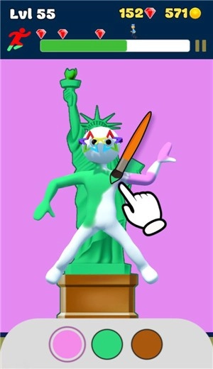 2.这是对你绘画与上色能力的考验,你可以通过为小人上色来解锁新的玩法与目标。需要根据背景的颜色调整角色,让它完美融入其中,完成后还会获得相应的评分。