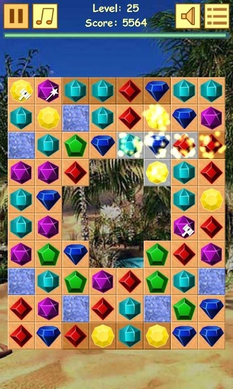 一个休闲游戏,使玩家上瘾,将三个相同的宝石链接在一起以消除它们,有趣的关卡模式,在线通行证可以获得很多积分,丰富的游戏色彩,简单而有趣,这里可以帮助玩家度过时光并玩上瘾的宝藏3个难题。从屏幕上移走珠宝和宝石。一行上有两个以上的匹配项。粉碎所有彩色瓷砖以完成关卡。