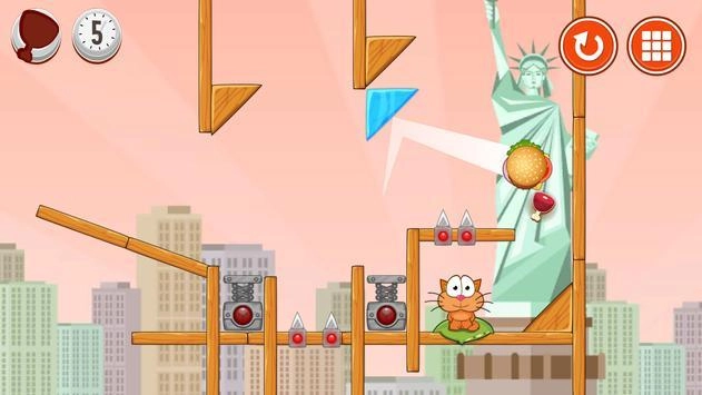 帮助饥饿的猫咪吃到更多食物,别让它饿肚子。这里有不少有趣的关卡,还有许多特殊道具可以供玩家使用。