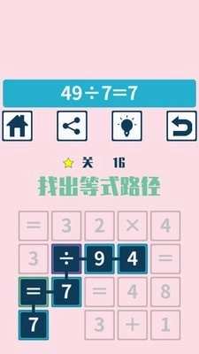 找出所有的算术等式,将它们连接起来,关卡解开(注意:里面有很多的陷阱,先找到的等式不一定是正确的解法)。