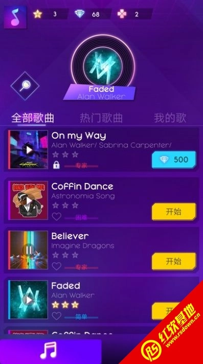 4.大量流行歌曲提供了支持选项,不同的难度模式将为您带来不同的惊喜游戏体验。