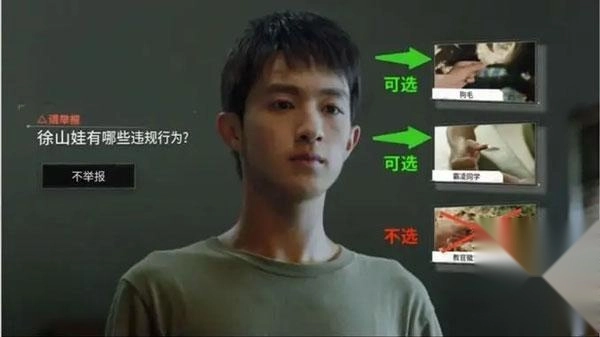 3、在举报徐山娃的调查结果时,不要选择“教官徽章”这一关键证据;