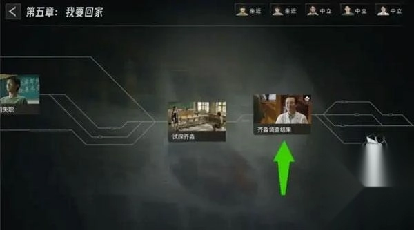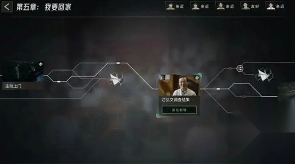 8、先把前两个剧情点的选项修改好,接着返回第五章,滑动到故事线的末尾,选择“江弘文的调查结果”这一剧情;