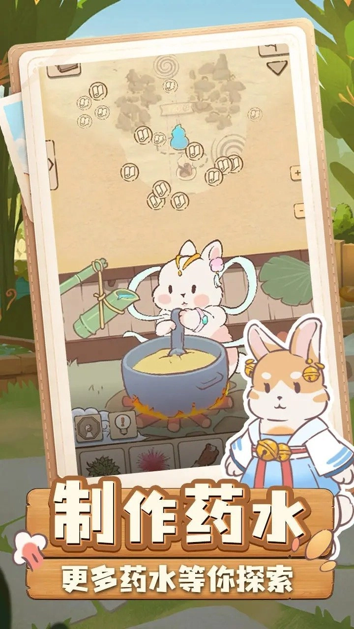 《兔与药》是一款休闲治愈风格的模拟经营游戏。你将与软萌的玉兔搭档,共同打理专属药房:收集各类药材,遵循制药流程炮制药水;合成药剂、炼制丹药,更能解锁长生丹,逐步提升店铺在天庭的名气。轻触操作的休闲经营玩法简单又有趣,全新的经营挑战正等待你的参与,让你在轻松惬意的氛围中享受游戏乐趣。