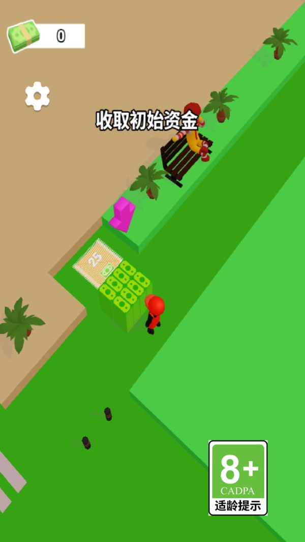 1、进入游戏后,按提示收取初始资金,点击对应区域修建设备、制作和售卖汉堡,获取收益。