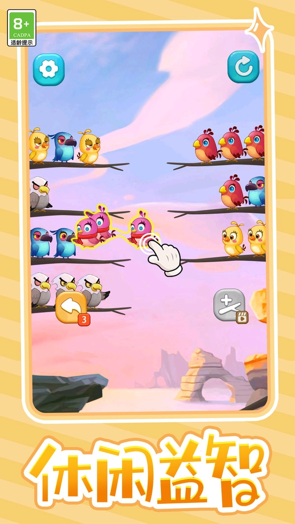 3.可爱灵动的小鸟造型与精致细腻的画面,营造出色彩明快、活泼欢快的氛围,使玩家能沉浸在愉悦的体验中。