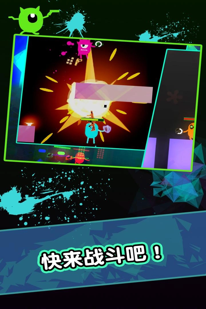 1.明亮精致的游戏画面,高品质的音乐和音效,众多怪物角色,与其他玩家决斗。