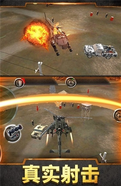 1、各种不同的武器你可以去装备自己的直升机,提升自己的攻击实力;