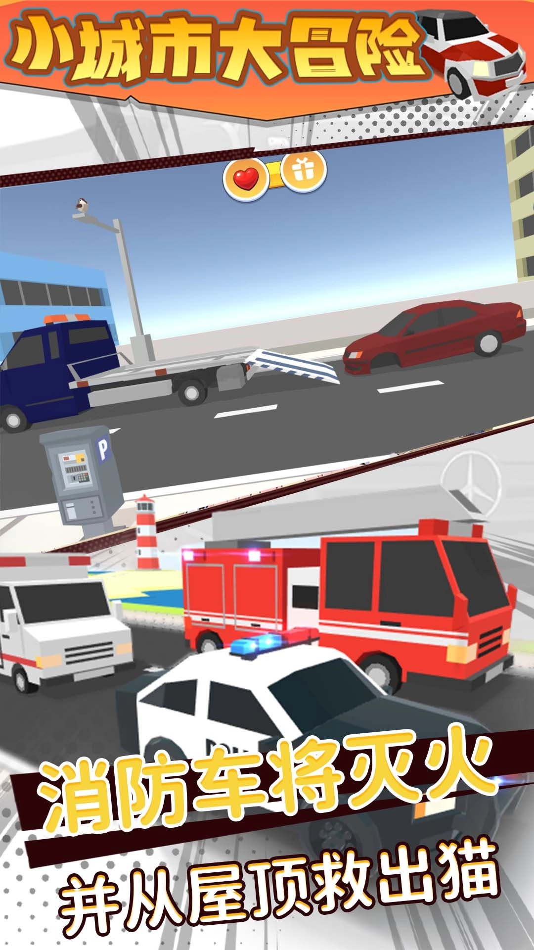小城市大冒险游戏非常有趣同时还会考验玩家的驾驶技巧,玩家驾驶消防车到达个各个地点进行抢险救灾,玩法非常的丰富有趣,喜欢的玩家快来体验吧。
