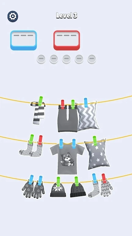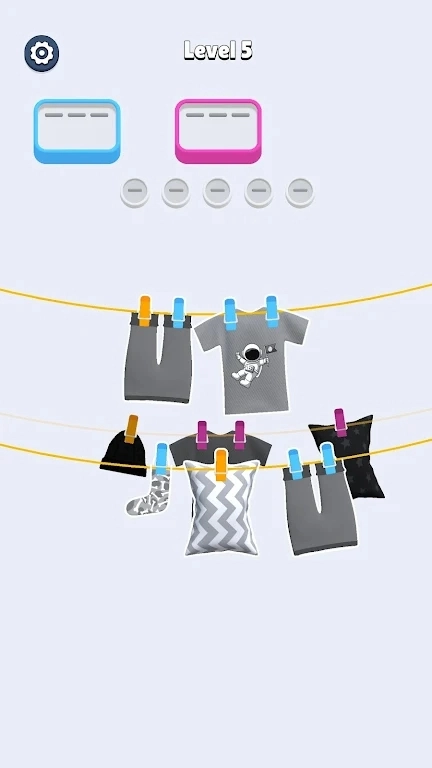 《衣夹颜色匹配》是一款简单又有趣的益智游戏,玩家要把不同颜色的衣夹和对应的衣服匹配起来。具体来说,就是观察衣服的颜色,然后挑选相同颜色的衣夹去夹住它们。游戏里设置了多个关卡和挑战,每个关卡的衣服和颜色组合都不一样,玩家需要又快又准地完成匹配。