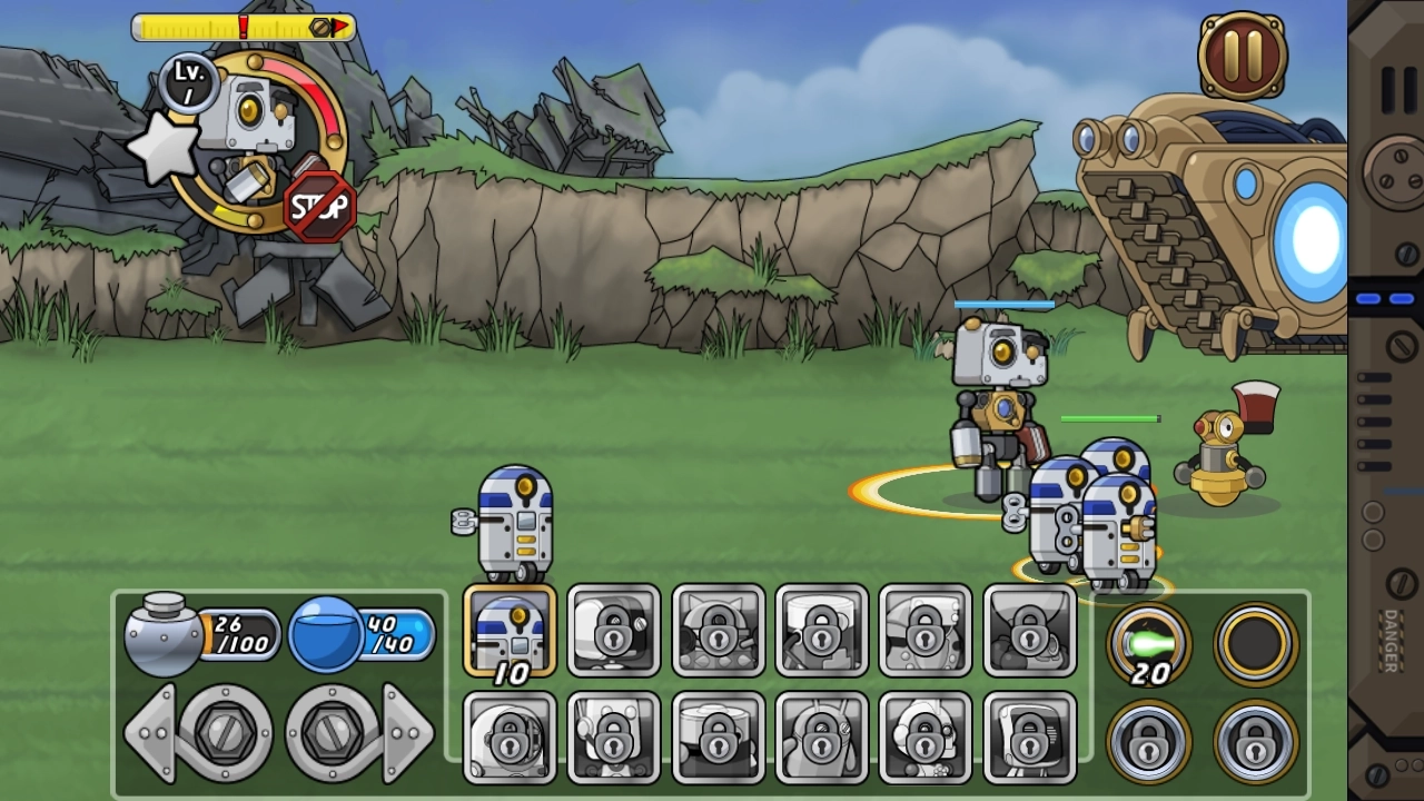 你需要收集能量来召唤更多机器人,这些机器人涵盖控制、进攻、防御等不同类型。