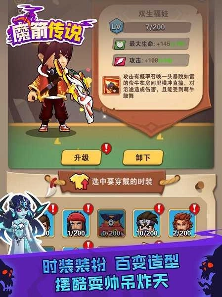 2、通关游戏关卡可以收获更多强力的弓箭和技能