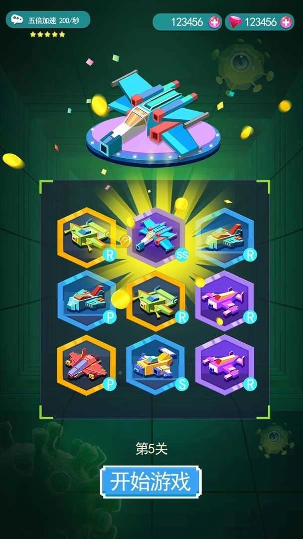 2、可选模块多达几十种,可自由组合拼装;打造出的战机华丽非凡,弹幕特效极致炫酷,带来前所未有的视听盛宴,宛如梦幻降临。