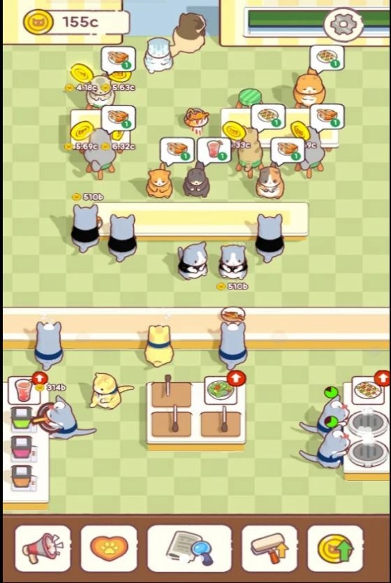 1、猫咪技能各异,助力餐厅运营更高效。
