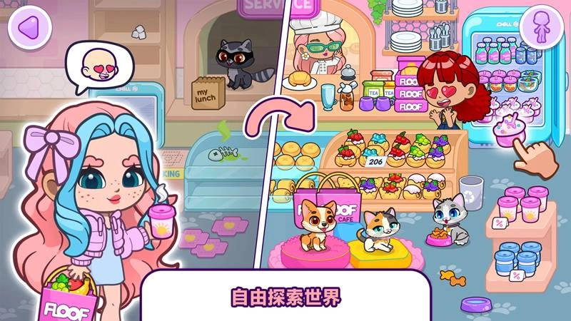 1、玩家可以自由定制专属形象,海量服饰可以自由搭配,让自己的角色在小镇中成为万众瞩目的存在。