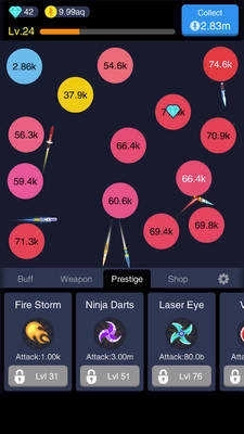 《放置之刃》是一款主打射击玩法的休闲放置类游戏,玩家将操控飞刀展开射击,通过击中小球来获取更高分数。游戏内包含海量关卡,每一关都经过了精心的设计。在游戏过程中,玩家能够对武器进行升级,以此增强自身的战斗力,同时借助灵活操作躲避敌人的攻击,解锁更多隐藏关卡。想要击败敌人、闯过关卡,就需要运用精准的射击技巧与灵活的操作。每个关卡都设置了不同的场景和难度,玩家需要不断挑战自我、提升技术,最终成长为真正的飞刀高手。