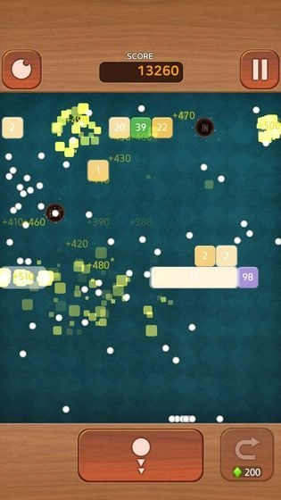 1、玩法规则很简单,用白色小球撞击砖块,使砖块上的数字持续减少,直至将砖块完全消除。