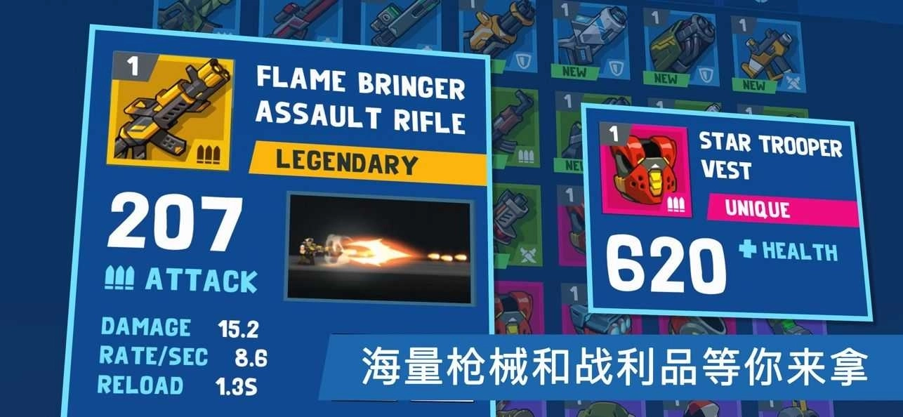 2、在冒险的旅途中,有众多英雄等待你召唤,还有丰富武器可供你收集。