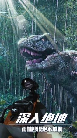 2.多种恐龙霸气造型设置,真实模拟狩猎激情挑战,逼真的森林环境和恐龙造型。