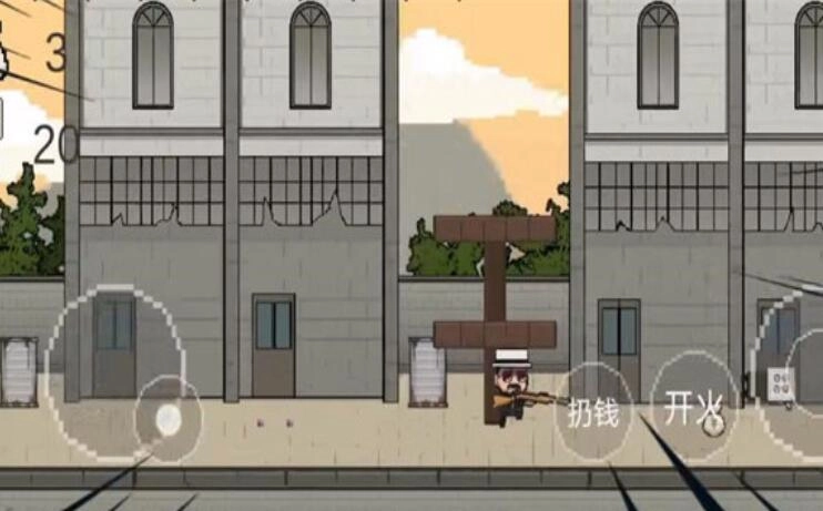 2、游戏关卡奖励丰富有趣,玩家控制人物消灭土匪后可以获得钱袋,将钱袋扔进建筑物的窗户可以获得丰厚的分数;