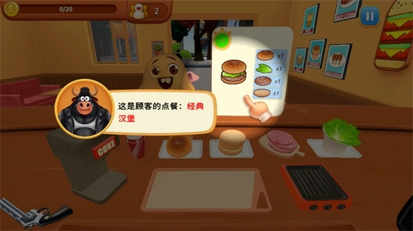烹饪冲突正版游戏是一款融合模拟经营与动作元素的厨房竞技游戏,玩家需要经营一家餐厅,烹饪各种美食来招待用餐客户来获取金币。烹饪冲突手机版免费版玩家以第一人称视角扮演餐厅主厨兼老板,通过关卡模式解锁汉堡、披萨等新食谱,根据顾客需求在限时内完成食材切配、火候把控等操作制作菜肴。赚取金币可用于升级厨房设备、装修餐厅,需高效管理订单流程,否则顾客等待超时会影响收益。