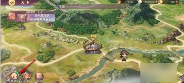 要提升《三国志幻想大陆》中武将的等级,第一步是点击页面左下角的【阵容】功能。
