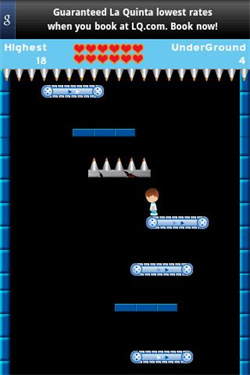 《是男人就下100层》这款游戏能让我们不断向更多平台跳跃,只有成功跳到平台上,才能继续向下挑战。一定要留意躲避机关陷阱,一旦触碰到机关,挑战就会失败。