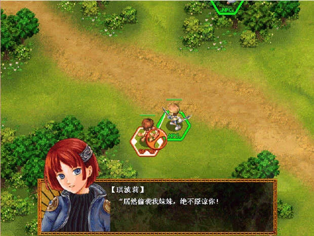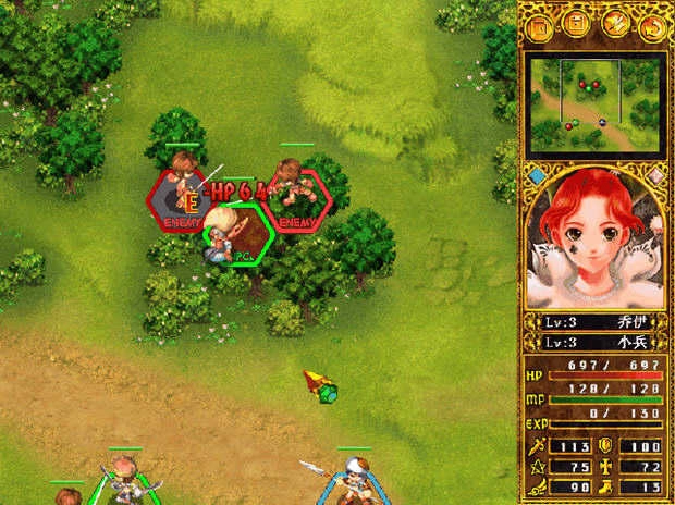 过关提示:部队编组时建议把安洁莉娜转职成骑士。战斗开始后,先以我方祭司系法师为核心就地围成一圈,让几个法师轮流施放回复术来积累经验,其他人保持待机状态。3个回合后,右上方的4个敌人会移动过来,我方用4个骑士夹击这些敌人,同时另外3个法师继续施放回复术,解决这4个敌人应该会比较容易。之后沿着最下方向右移动,把右方的敌人全部消灭后,右上方的盈月一伙会分几批逐渐移动下来,可以让等级较低的米雅法儿直接攻击等级较高的盈月,这样能获得更多经验值,她可以在本关升级转职为牧师。而4个骑士则可以拦截移动下来的盈月部下,摆平她们并不难。如果本关战败,国信会被劫走,希蜜也不会被责骂了。妮雅等人逃到一个村子想休息一下,没想到这里正是响马团的大本营——响马村,只能强行突围了。这是游戏中的第2个小分支——“突围响马村”,这一关不允许失败,过关后将按照正常流程进入第7关。