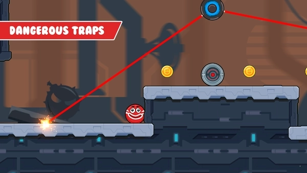 有些区域存在致命的移动激光,快滚动逃离这座致命的工厂吧。