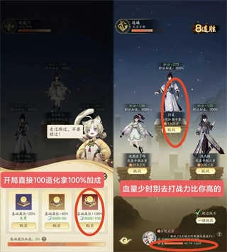 12、参与仙门乱斗时,记得要购买100%的属性加成!当自身血量所剩不多时,切勿强行挑战他人,即便你有战胜对方的实力,若血量低于对手,也会直接判定失败!