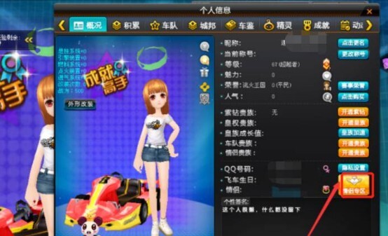 在QQ飞车游戏里,玩家若想解除情侣关系,需点击右侧栏中的个人信息选项。