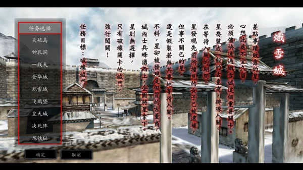 过关提示:这一关采用大家熟悉的金华城地图,任务是保护冷燕这位美丽的女主角,但实际上只要主角存活就能通关——不过作为英雄,肯定不能让自己失败。开局时附近有三个持刀官差,他们手里的二级红剑是挺不错的武器,用↑↑A↑↑A ↓↑↑A这套连招能快速解决其中两人,剩下的那个会去给捕头王强报信,进而引来一大波追兵。要是不喜欢用剑,也可以在箱子里找找刀或者二级匕首,城中央的房间里还有好几种武器可以挑选。等王强带着手下赶来时,先锁定他,然后反复用↑↑A↑↑A ↓↑↑A连招打他,暂时不用管冷燕,她不会马上死。要是被敌人围住了,可以先退出战斗,打破坛子拿包子回血,再拉开和敌人的距离。因为王强速度最快,能在他其他部下还没赶到的时候集中攻击把他杀掉,这样就能顺利通关了。