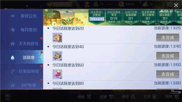 6、每日登录游戏以及参与对战都能获取活跃度,活跃度可用于兑换奖励,只要每天完成活跃度任务,就能换取对应的奖励。