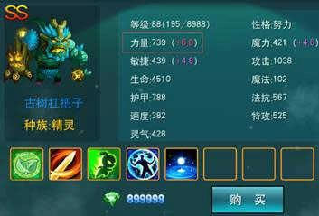 我们主要关注数值情况,+号后面的数字越大意味着品质越出色。生物的评级高低,关键取决于其成长属性点的数值大小。就像交易中心里那只堪称逆天的SS级宝宝: