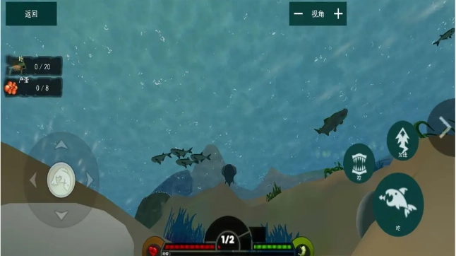 1、在正版《海底大猎杀》中,各类霸气十足的鲨鱼均可自由选择进阶方向,通过不断吞噬其他生物来实现成长。