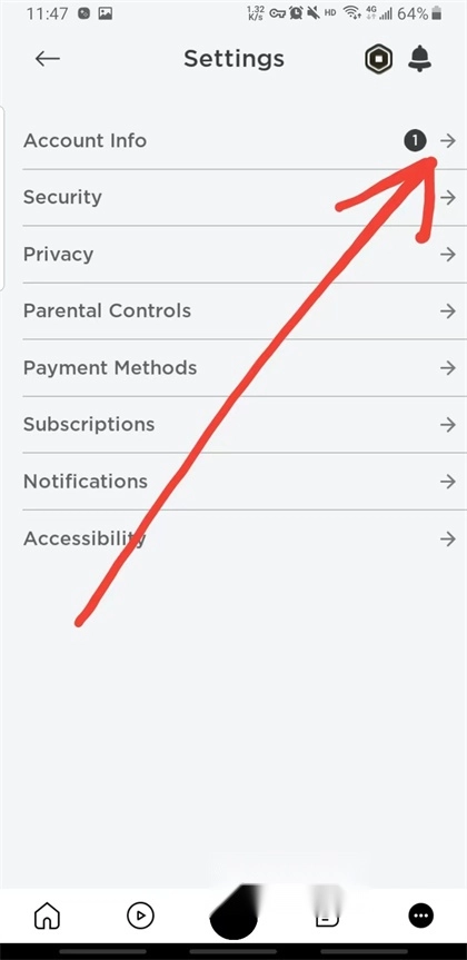 3.点击进入设置界面点击第一个account info(账户信息)右边的箭头
