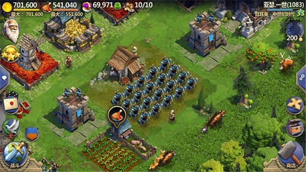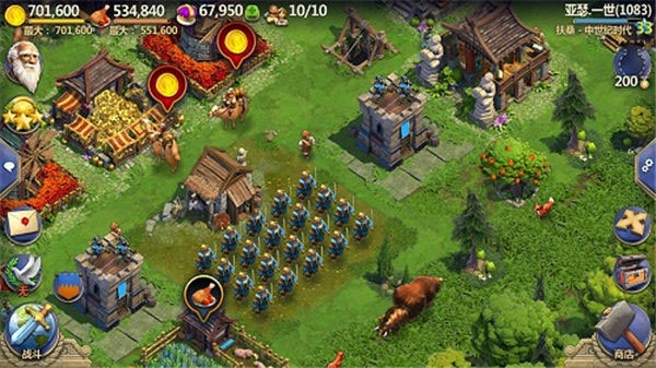 1、建筑升级、外交贸易、资源掠夺、城池攻伐等玩法相互交织;