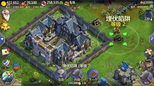 除了以上防御措施之外,守卫领土还可以布置陷阱,陷阱功能多样,配合箭塔城墙都能取得不俗的效果,更多的防御,更强力的保护手段就等着各位陛下慢慢摸索了!