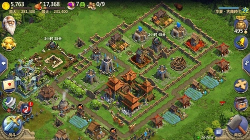 军事发展的前提是军事建筑的合理搭建。而军事建筑又分为攻击性和防御性建筑。攻击性建筑有生产部队的兵营,解锁兵种的铁匠铺以及竞技场和帝王陵等,而防御性建筑则有营寨、马厩、箭塔、投石器、指挥所等,强悍的军事力量必然有着攻守兼备的军事建筑。