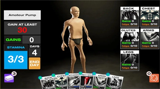 玩家每天会抽取一手训练卡,代表不同的锻炼方式,可用于锻炼不同的肌肉群。