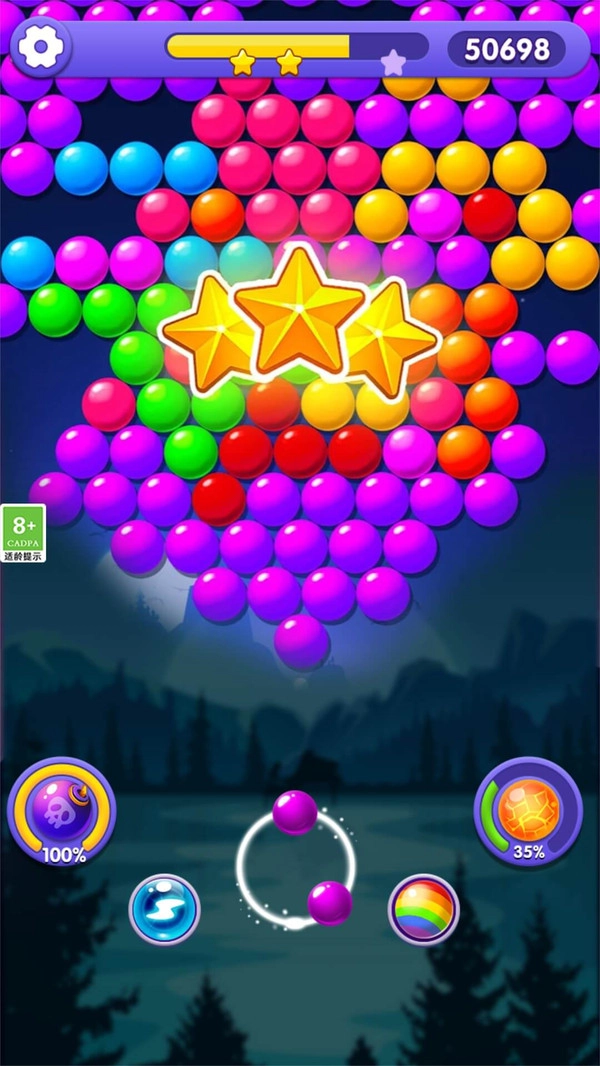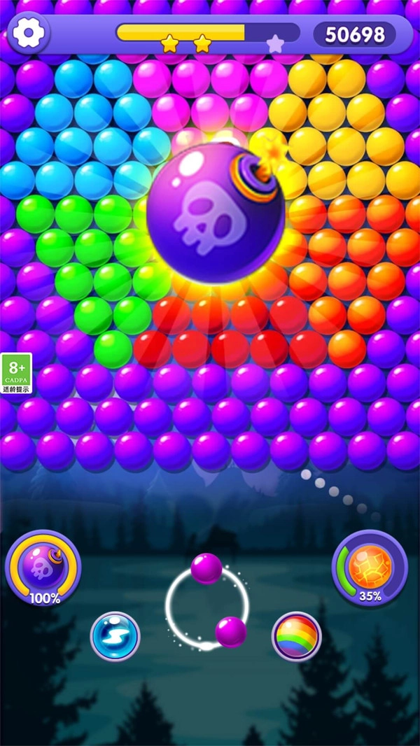 3. 特色鲜明的道具与技能:游戏提供多种道具和技能供玩家选用,像提升射击精准度的瞄准辅助、能清除一整排泡泡的爆炸弹等,让游戏体验更为丰富有趣。