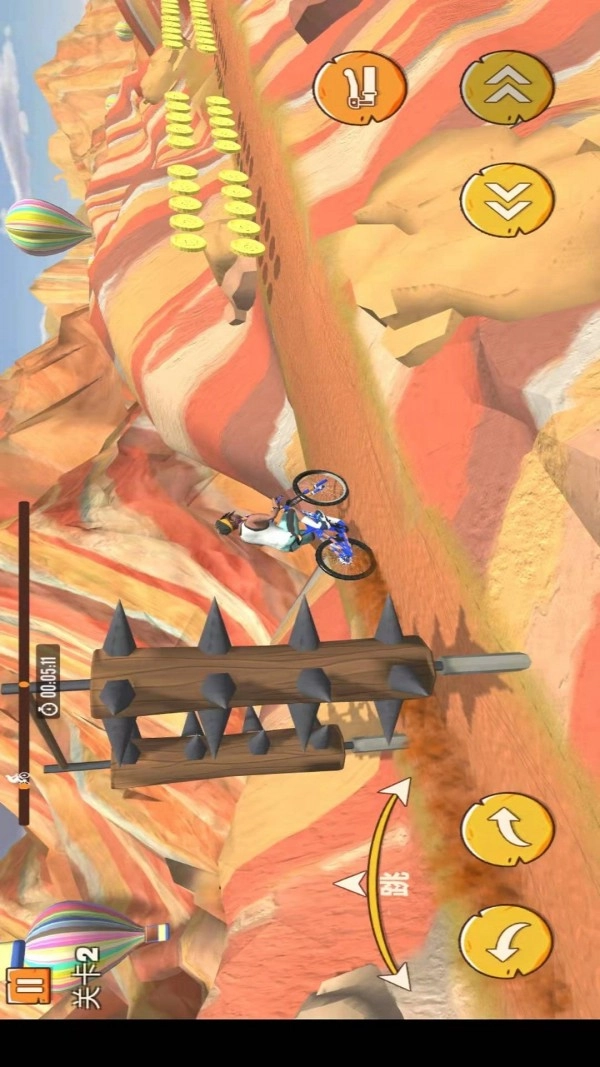 3、在《最囧疯狂山地单车》里,玩家追求的不只是速度,还得有帅气的动作才行哦。