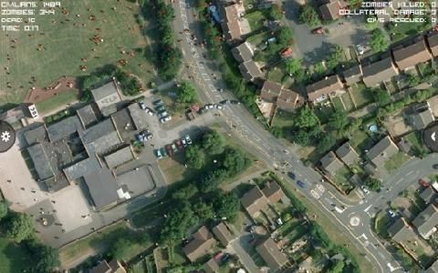 这是一款聚焦僵尸与人类的模拟器。它不提供任何操控功能,仅允许你通过观察来感受僵尸与人类之间的生存较量。启动后会呈现一幅卫星地图,房屋的瓦片、汽车、树木等各类物体都清晰可辨。